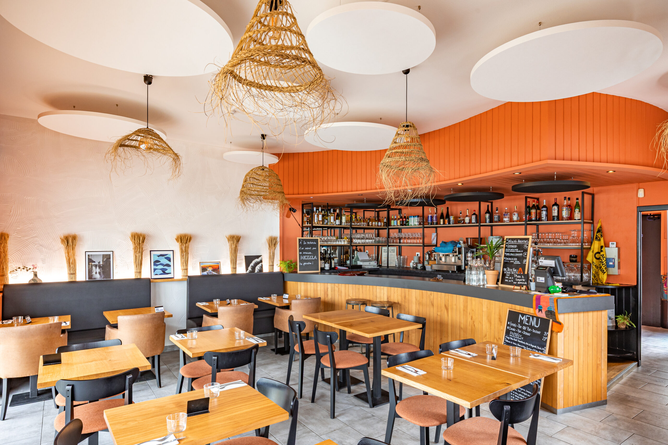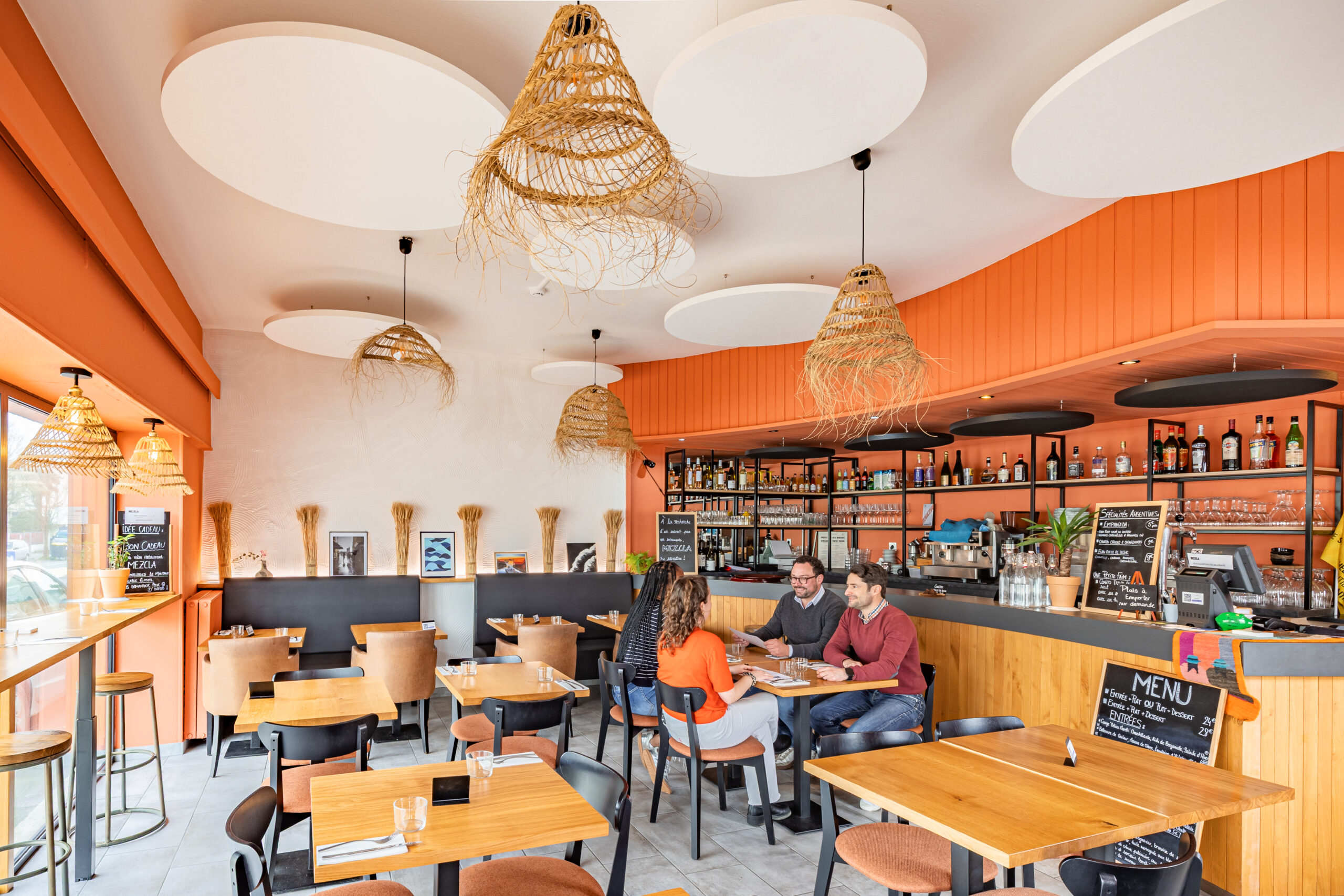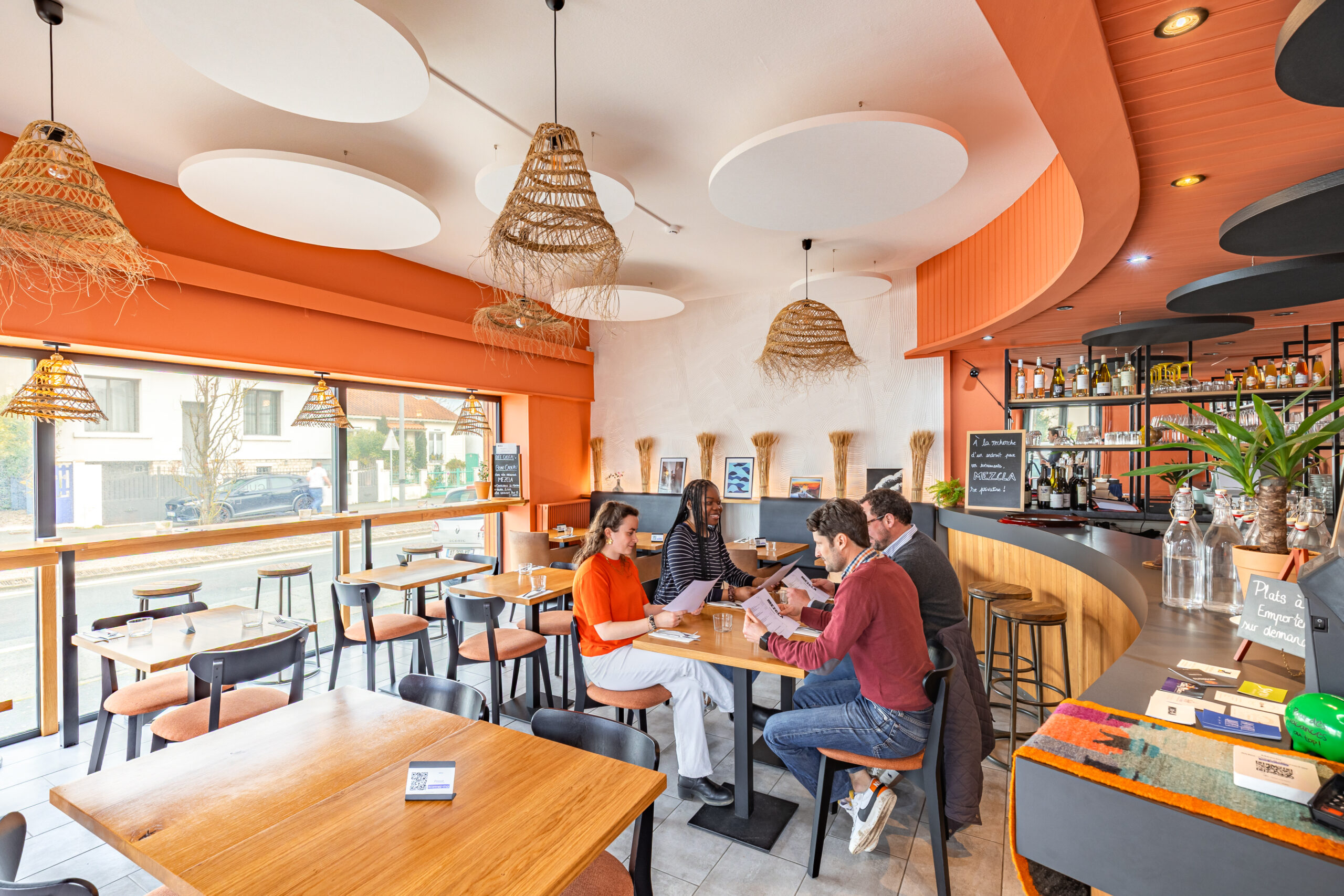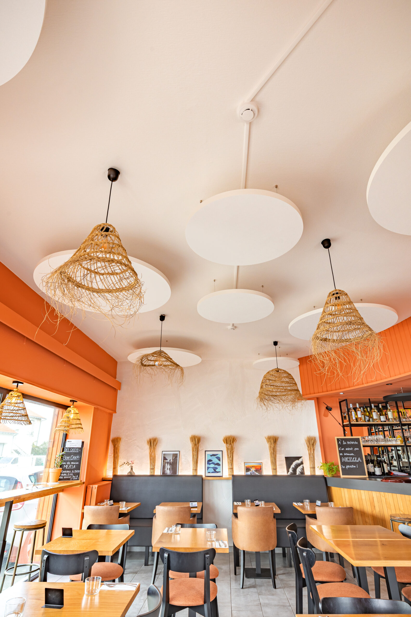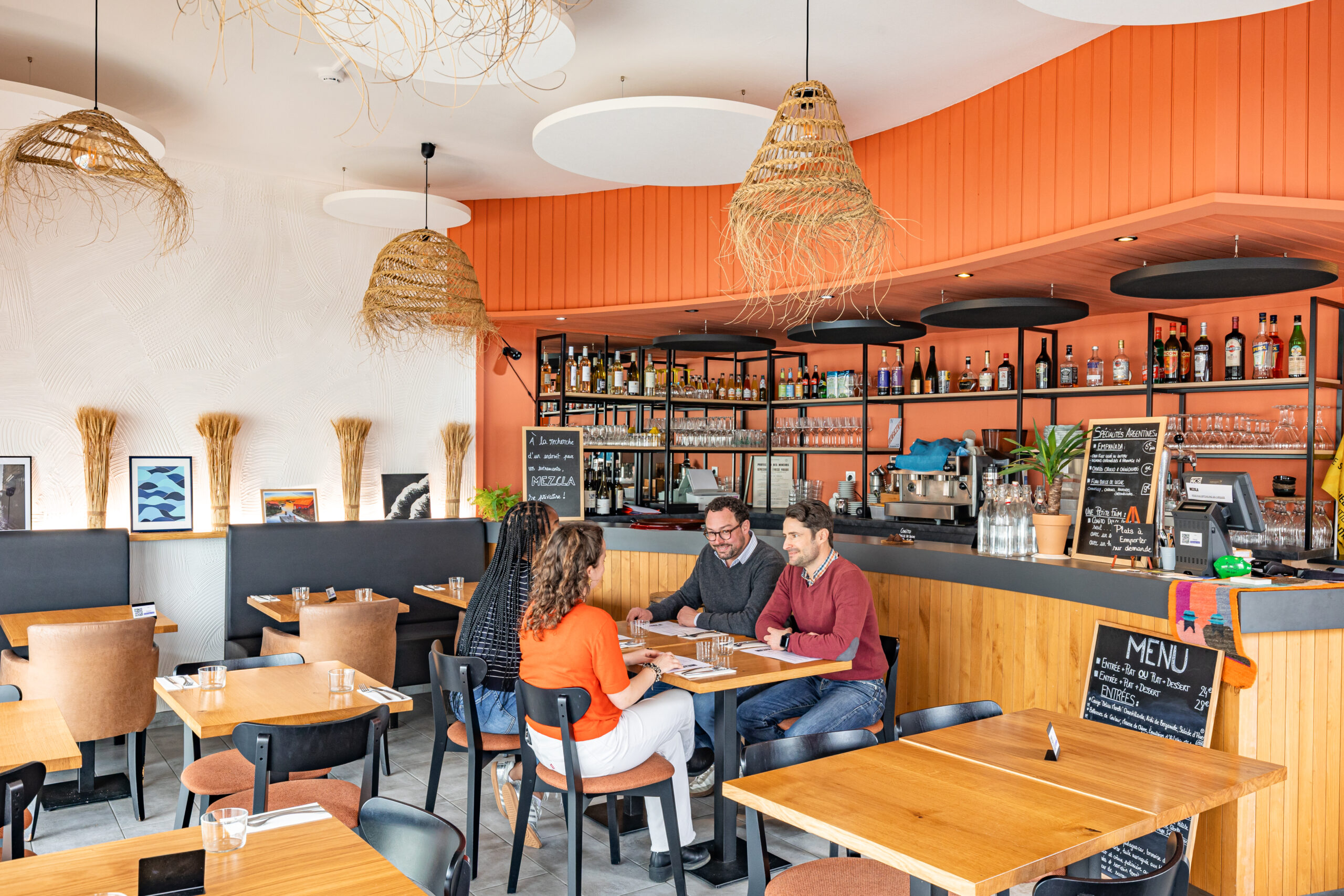 Problématique : Dans ce restaurant à La Rochelle en Charente Maritime la salle de restauration est bruyante. Il y a un besoin en solution acoustique.